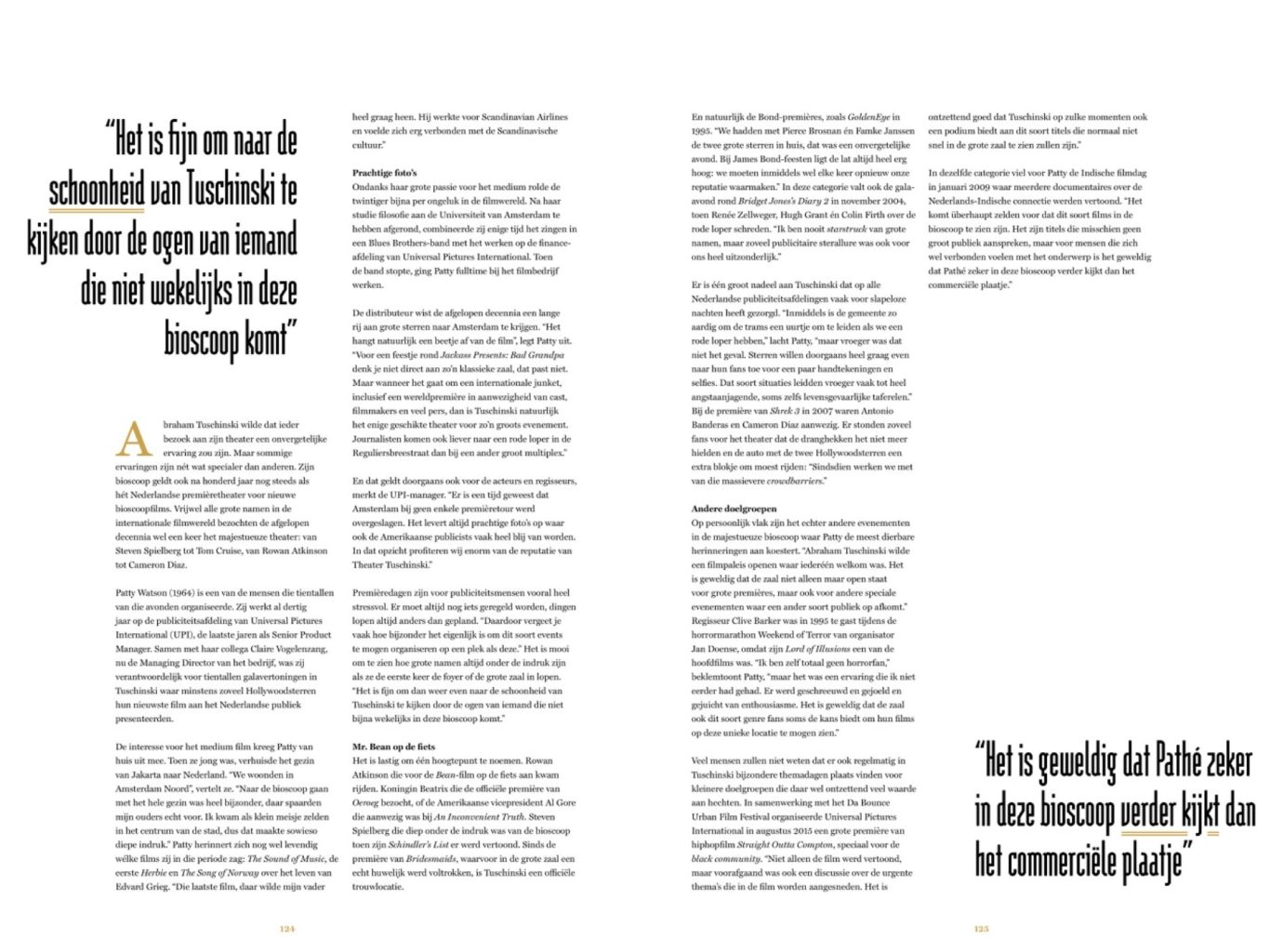 Als jong meisje kwam ik met mijn familie voor het eerst in het Koninklijk Theater Tuschinski. Mijn ouders, die hun bestaan in het voormalig Nederlands-Indië achter zich moesten laten, hadden in die tijd niet veel te besteden. Met hun spaargeld konden ze ons een paar keer per jaar trakteren op een bioscoopuitje. Een bezoek aan het betoverende Koninklijk Theater Tuschinski was een uitstapje, dat voor ons heel bijzonder was. In die tijd is mijn liefde voor film ontstaan.
